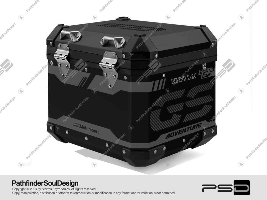 R1200GS ADVENTURE TRIPLE BLACK BMW ALUMINIUM TOP BOX “CARBON GS” GRAPHIC & VINYL KIT#19605
